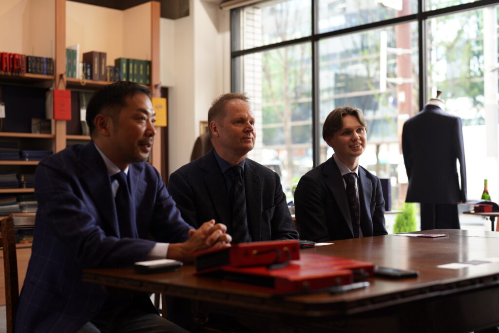 英国を代表する生地メーカー「Harrisons/ハリソンズ」のJames Dunsford社長が、福岡えびすテーラーに来店されました。