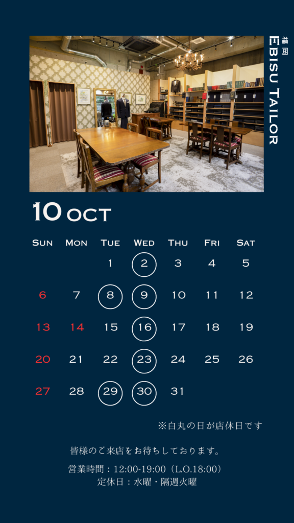 【福岡えびすテーラー】10月の営業案内【1日より営業】