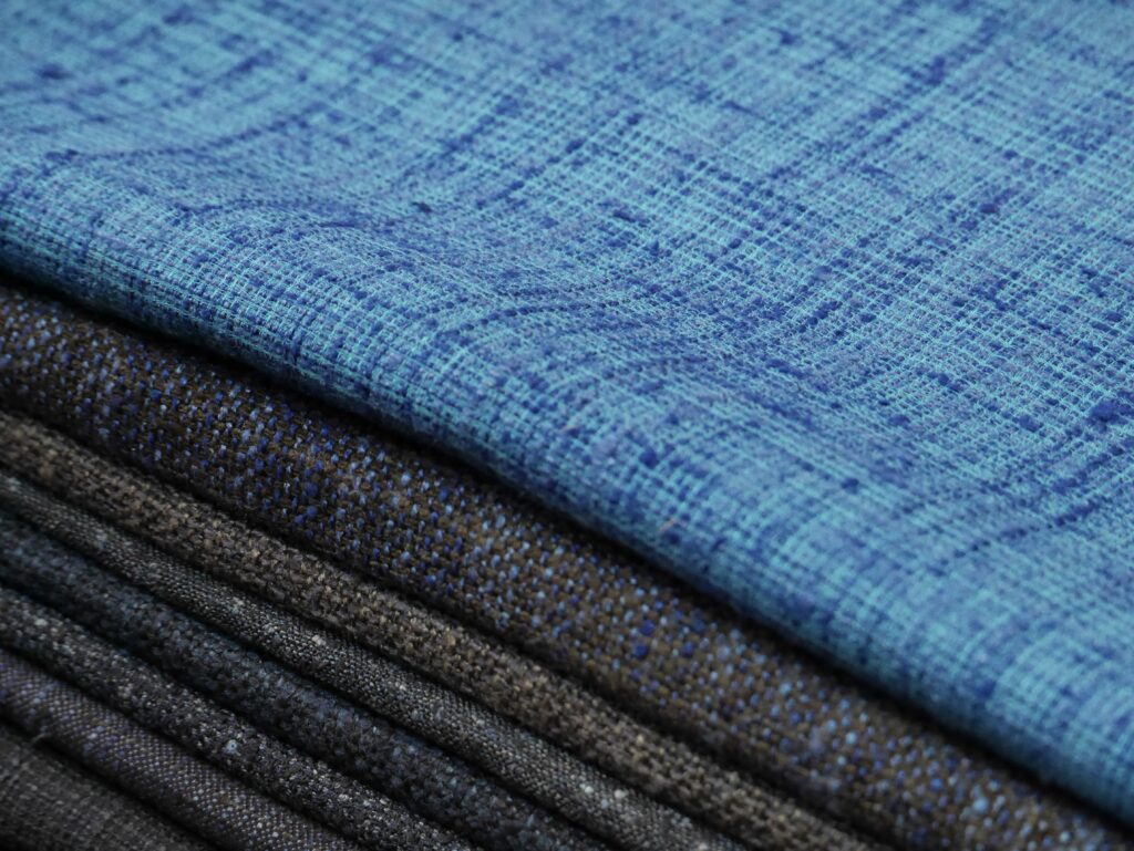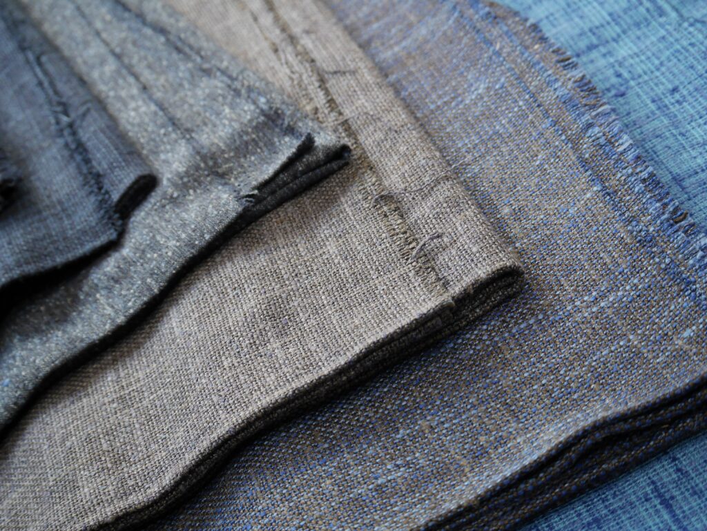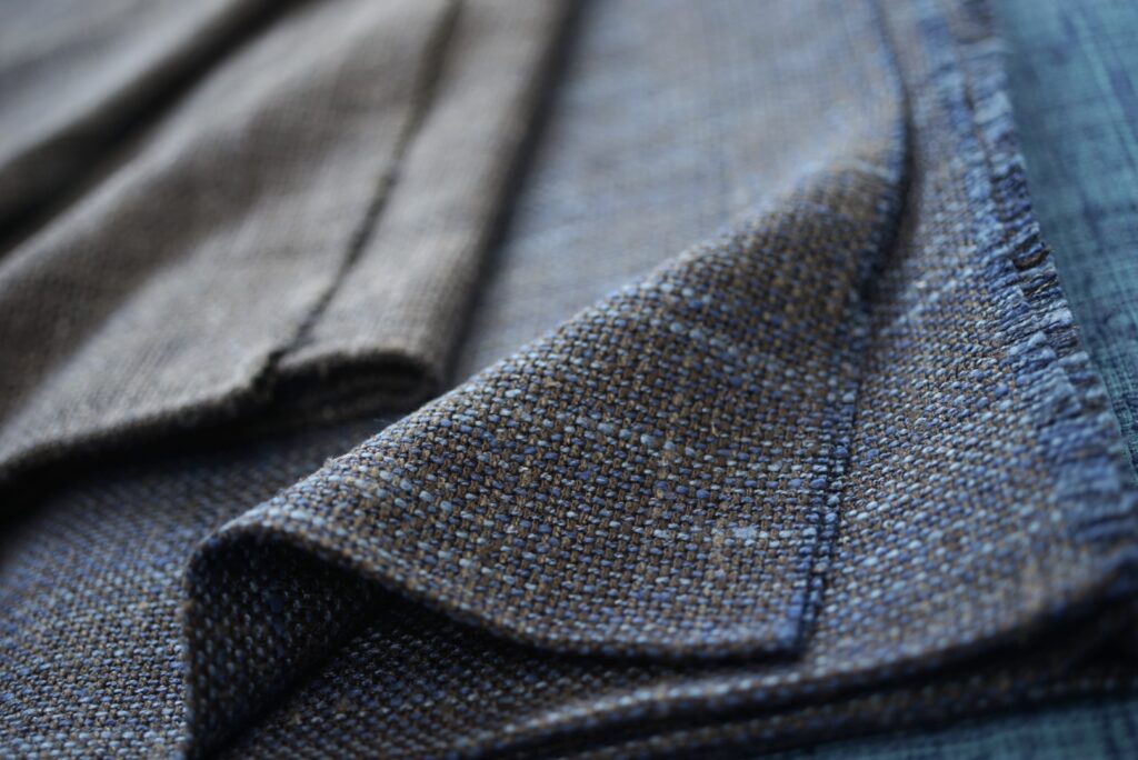 麻やシルク、コットンといった素材をブレンドしている上品な服地が多いです。
