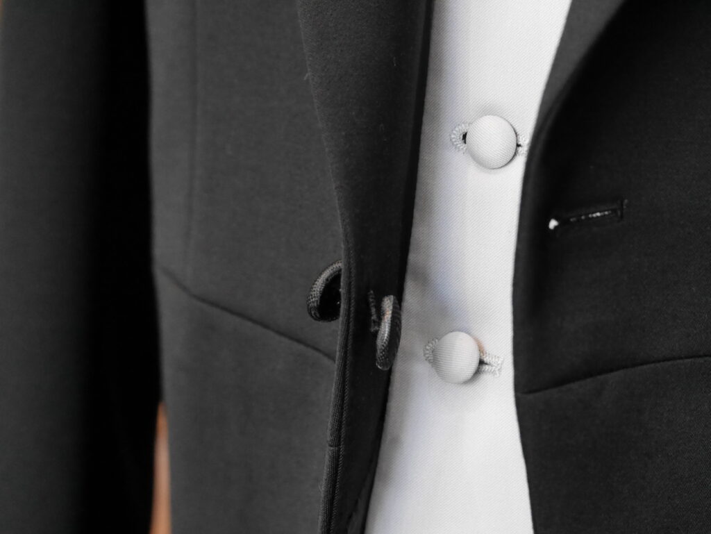 ジャケットの内側にベストもしくは、カマーバンドを着用します。