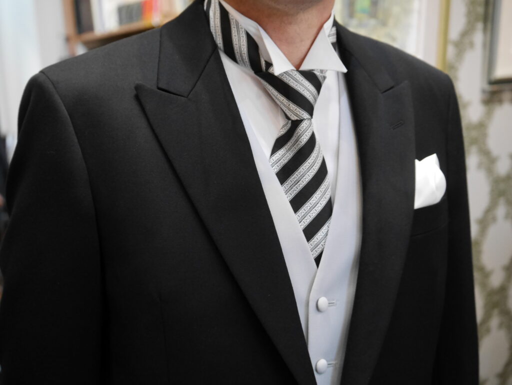 昼の正礼装です。えびすテーラーでは、モーニングコート(ベスト+コールパンツ付き)が143,000円(税込)~にてお仕立て可能。