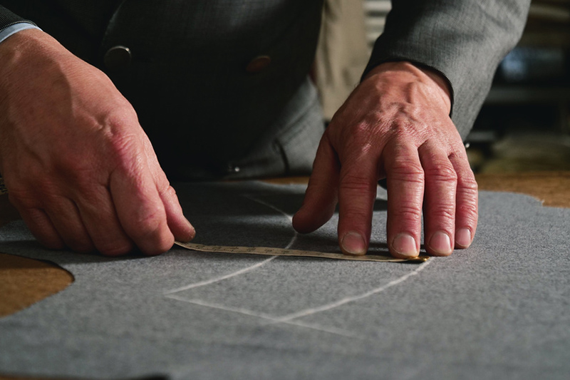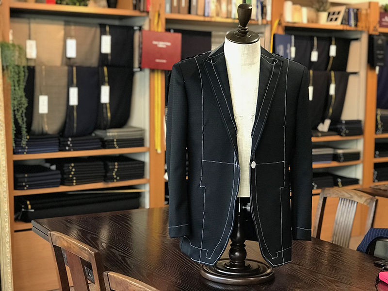 お客様の生活スタイルやイメージするシルエット、体型の細かなクセなどを考慮にいれつつこのゆとり量を決定し、スーツのシルエットを作り上げていきます。