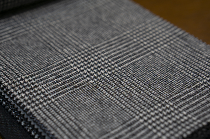 また、イギリスの生地は一般的にクラシックで控え目な色や柄が多いですが、最近では個性的なも多く、英国調のグレンチェックにアクセントの効いた色を加え、現代風にアレンジした生地も多くあります。