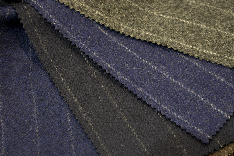 ”紡毛糸”と呼ばれる羊の太く短い毛を用いるため、ツヤはなく表面は荒っぽいのですが、その分空気を多く含みことができ、防寒性が高く秋冬にピッタリな生地といえます。また、耐久性にも優れているのでコートやジャケット用の生地としてとても人気です。