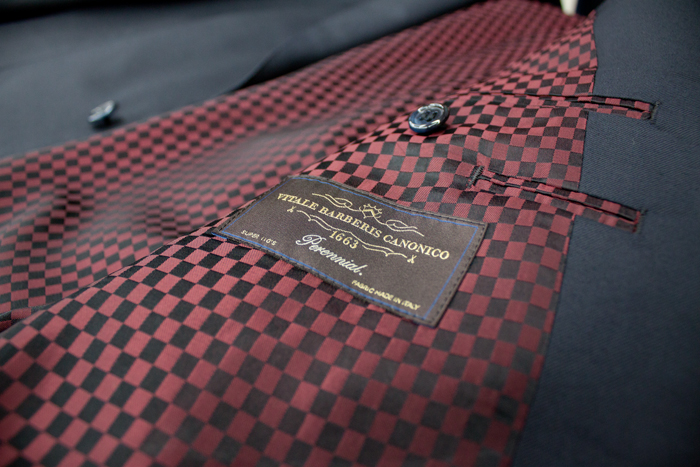 カノニコ(イタリア製)のSuper110’の生地を使い縫製。独特の光沢とぬめりはさすがカノニコといったところです。