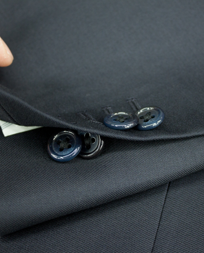 サルトリアの伝統技法である「キスボタン仕上げ」はさらに、実際にボタンを外せる仕様にしています。