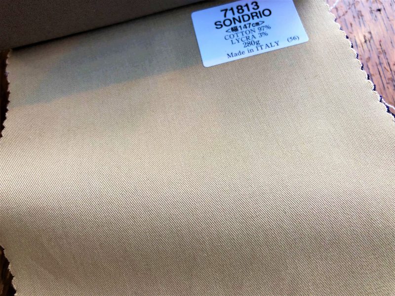 中でも人気が高まってきているコットンツイルは、見た目はかっちりとして着心地は軽く滑らかで、流行のコロニアルカラーの定番のベージュはもちろん、清涼感のあるブルー系もおススメです。